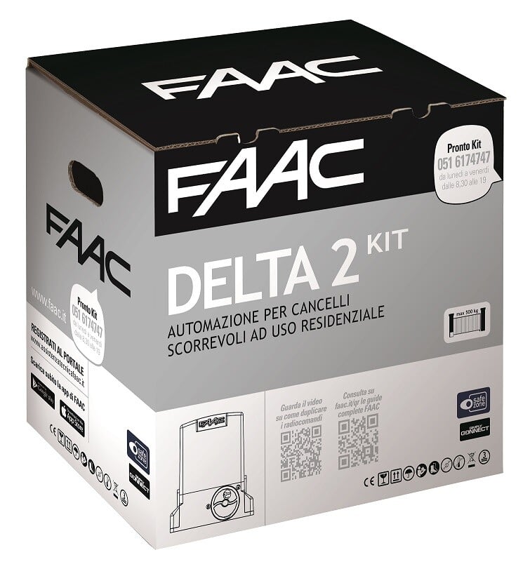 Pronto Kit fornisce al numero 051 6174747 l'assistenza sui kit che vengono venduti e distribuiti in Italia. Ogni kit FAAC comprende tutti i componenti elettrici, elettronici e meccanici necessari per realizzare rapidamente automazioni perfette, semplificando il lavoro dell’installatore.